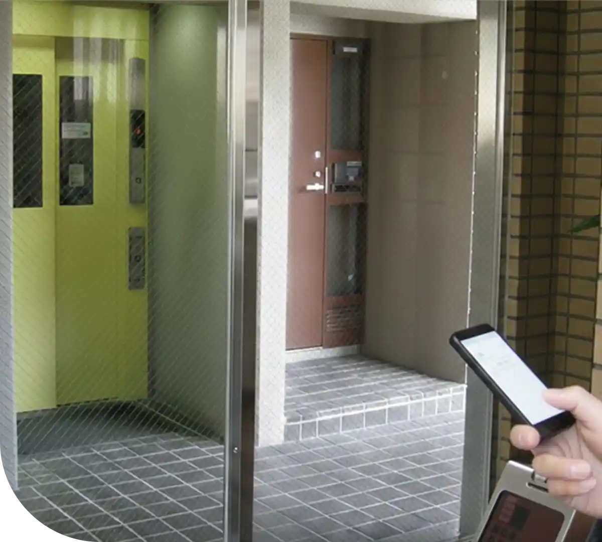 - 毎日のようにマンションに配達される配達員には、Felica(非接触カード)や鍵を持っていただき、それで開錠していただきます。